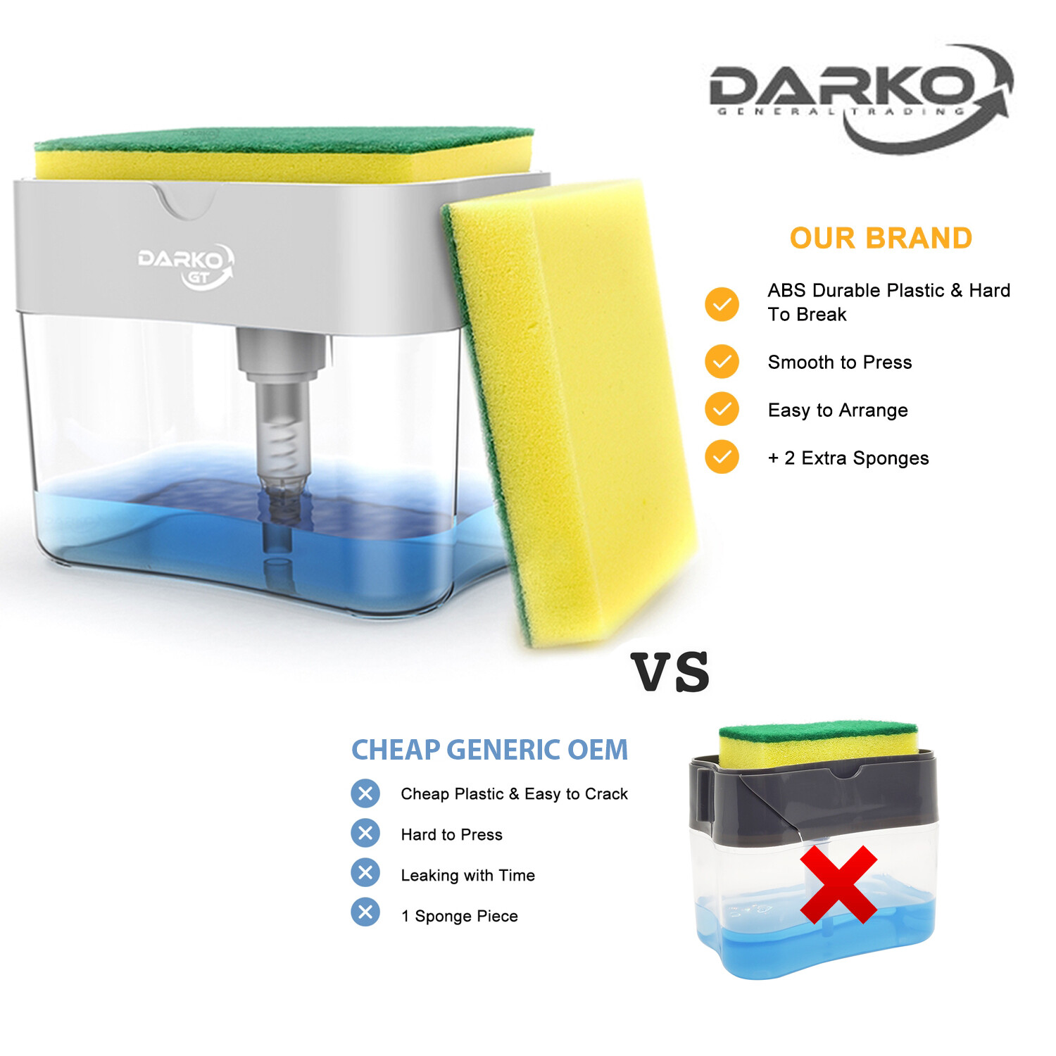 ♥ Harga Premium Original “DarkoGT” 2 in 1 Sponge Holder With Soap Dispenser, High Quality Liquid Dishwashing Counter Top Sink Dispenser 380ML (1 Caddy 2 Free Sponges) Terbaik Murah Di Malaysia